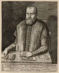Gilles was one of three brothers who served as French diplomats, three of the nineteen children of Louis de Noailles and Catherine de Pierre-Buffière.[1] Gilles became Bishop of Dax after the death of his brother François. Gilles' other offices included; Master of Requests, Parliamentary Councillor for Bordeaux, and Ambassador (or French agent) in Poland and in England during the crisis of the Scottish Reformation.[2]