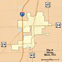 ![]() Location of Gilman in Iroquois County, Illinois | |