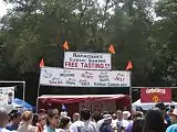 Visitors tasting free samples of garlic ice cream, 2007