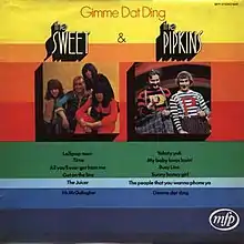 Gimme Dat Ding is a split album by The Sweet (side one) and The Pipkins (side two), released on EMI's budget record label, MFP (Music For Pleasure) in 1970. It is named after the 1970 song "Gimme Dat Ding" by the Pipkins.