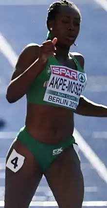 Gina Akpe-Moses (born 25 February 1999 in Lagos, Nigeria) is an Irish athlete specialising as a sprinter. In 2017 she became the European junior champion over 100 metres, the first Irish woman to win an sprint gold medal at that level.[1]