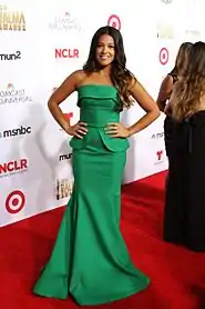 In 2012, Rodriguez played young hip-hop artist Majo Tenorio in the independent musical-drama film Filly Brown, for which she won an Imaged Award.[4] She received good reviews for her performance in film.[17] She also was the recipient of the Best Actor Award at the First Run Film Festival in New York.[13][18] On June 9, 2013, Gina won the Inaugural Lupe Award.[19] On April 16, 2013, during an interview, she revealed she was offered a role in the Lifetime television series Devious Maids, but turned it down.[20][21] On October 16, 2013, she joined the cast of the movie Sleeping With The Fishes.[22] She is also working on an album.[4]