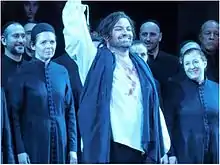 International appearances include the San Francisco Opera (Rodolfo), the Deutsche Oper Berlin (Rodolfo), the Opéra de Marseille (Cavaradossi),[15] Oviedo (Rodolfo), Lucerne (Verdi Requiem), the Théâtre des Champs-Élysées (Verdi Requiem), the Gewandhaus, Suntory Hall, Japan, Wigmore Hall, London, the Concertgebouw in Amsterdam, (Cavaradossi), and the Savonlinna Opera Festival (Pinkerton).[11]