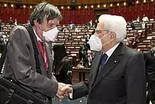 Giorgio Parisi received his degree from the University of Rome La Sapienza in 1970 under the supervision of Nicola Cabibbo. He was a researcher at the Laboratori Nazionali di Frascati (1971–1981) and a visiting scientist at the Columbia University (1973–1974), Institut des Hautes Études Scientifiques (1976–1977), and École Normale Supérieure (1977–1978). From 1981 until 1992 he was a full professor of Theoretical Physics at the University of Rome Tor Vergata and he is now professor of Quantum Theories at the Sapienza University of Rome. He is a member of the Simons Collaboration "Cracking the Glass Problem".[3] From 2018 until 2021 he was the president of the Accademia dei Lincei.[4]