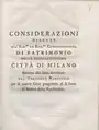 - Considerazioni dirette all'ill.ma ed ecc.ma Congregazione di patrimonio della eccellentissima città di Milano intorno alla terza diversione del torrente Redefosso per il nuovo cavo progettato al di sotto de' mulini della Vecchiabbia. [Milan].