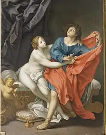 Ramelli excelled in portrait miniatures. In the Gallery of Bologna, there are miniatures of Guido Reni, Lorenzo Pasinelli, Giovanni Gioseffo Dal Sole; while in Dresden is a female portrait. In the Riksmuseum of Amsterdam, there is a miniature of Joseph and Potiphar by Carlo Cignani. The Palazzo Graziani in Pesaro has a miniature painting of a Shepherd with dead game, while at the University of Padua is a miniature of the Virgin and Child.[2] The King of Sardinia invited Ramelli to his court, where he was for some time employed in painting the portraits of the most celebrated painters, many of which he copied from the originals, painted by themselves, in the Florentine Gallery (now Uffizi).[3]