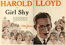 Girl Shy is a 1924 romantic comedy silent film starring Harold Lloyd and Jobyna Ralston. The movie was written by Sam Taylor, Tim Whelan and Ted Wilde and was directed by Fred C. Newmeyer and Taylor. In 2020, the film entered the public domain.[4]