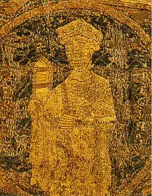 ![]() Portrayal of Queen Gisela on the Hungarian coronation pall from 1031 | |