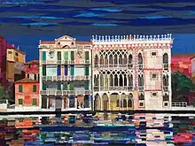 So, what Vittorio Sgarbi will define cloth intarsias in his presentation of the volume "Omaggio alla Cristianita’ ", were born: a very detailed work looking for, among thousands of remnants, the desired shape and the right hue: the distinctive characteristics of silk give the possibility of getting some shades, variegations and chromatic reflections really original and unique in their kind.[4] At Portofino she successfully tries out the first paintings with her technique, and in 2000 exhibits some 30 of them at Spazio San Carpoforo in Milan.