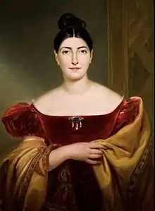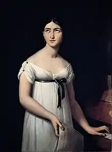 Pasta was born Giuditta Angiola Maria Costanza Negri in Saronno, near Milan, on 26 October 1797.[1] She was born of the Negri family, who came from Lomazzo, where the family practiced medical art. Her father, Carlo Antonio Negri or Schwarz, was Jewish and a soldier in the Napoleonic Army.[2] She studied in Milan with Giuseppe Scappa and Davide Banderali, and later with Girolamo Crescentini and Ferdinando Paer among others. In 1816, she married fellow singer, Giuseppe Pasta and took his surname as her own.[3] She made her professional opera début in the world première of Scappa's Le tre Eleonore in Milan that same year. Later that year she performed at the Théâtre Italien in Paris as Donna Elvira in Don Giovanni, Giulietta in Niccolò Antonio Zingarelli's Giulietta e Romeo, and in two operas by Paer.[1]
