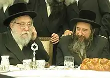 Rachmastrivka Rebbe Rabbi David Twersky (right) the inauguration of the Rachmastrivka beth midrash