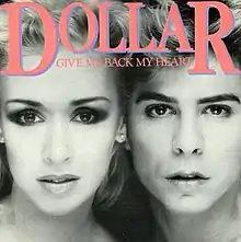 "Give Me Back My Heart" is a song by British pop duo Dollar, released in March 1982 as the third single from their third album The Dollar Album. The song was their second biggest hit out of the five top twenty hit singles off the album, after "Mirror Mirror". It reached No. 4 in the UK,[1] and No. 8 in Ireland. The song was co-written by Trevor Horn and Simon Darlow, and produced by Horn.