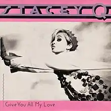 "Give You All My Love" is a song by American singer Stacey Q. It was released on May 25, 1989 as the lead single from her third studio album, Nights Like This, in 1989 by Atlantic Records. Written by Stacey Swain and David Cole and produced by Cole and Robert Clivillés, "Give You All My Love" is primarily a dance-pop song. Two versions of the song were released, the album version that appears on Nights Like This and the Crossover house mix.