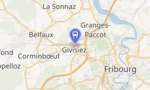 Givisiez railway station (French: Gare de Givisiez) is a railway station in the municipality of Givisiez, in the Swiss canton of Fribourg. It is located at the junction of the standard gauge Fribourg–Ins line of Transports publics Fribourgeois and the Fribourg–Yverdon line of Swiss Federal Railways.[1]