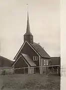 In the 1800s and 1900s, several Englishmen (some of those were noblemen) owned houses along the river at Gartland, where they lived during their stay in Grong. One was Thomas Merthyr Guest, a man of considerable wealth. He bought two Gartland farms and in 1873, he bought the old Gløshaug Church to prevent it from being torn down. Grong municipality wanted to tear down the old church and build a new church for Harran, but instead Mr. Guest purchased it and restored it. Meanwhile, the municipality built the new Harran Church in 1874 at Fiskum in the nearby village of Harran, about 5 kilometres (3.1 mi) to the northeast. Mr. Guest's widow sold the church in 1908 to a local farmer who in turn in 1910 gave the church to the municipality.[5][6][7]