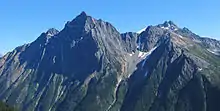 The highest point in the park is Mount Dawson, at 3,377 metres (11,079 ft).[18] The precipitous Mount Sir Donald stands at 3,284 metres (10,774 ft),[19] Mount Macdonald at 2,883 metres (9,459 ft),[20] Mount McNicoll at 2,610 metres (8,560 ft),[21] and Mount Abbott at 2,465 metres (8,087 ft).[22] Peaks of the Hermit Range, the Bonney and Bostock Groups, the Van Horne Range, Purity Range and the Dawson Range, all lie wholly or in part within the park, including Uto Peak at 2,927 metres (9,603 ft)[23] in the Sir Donald Range.