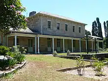 Before 1838, people with mental or emotional problems in the Sydney area were housed in a "lunatic asylum" in Gladesville, a suburb located on the Parramatta River's Northern banks between Sydney and Parramatta, or at the Female Factory in Parramatta, twenty-four kilometres west of Sydney. In the 1830s, construction of a purpose-built asylum began on the banks of the Parramatta River, in the area now known as Gladesville. The original sandstone complex, known initially as Tarban Creek Lunatic Asylum, was designed by the Colonial Architect, Mortimer Lewis, between 1836 and 1838.[3] Patients were then transferred from Liverpool and the Female Factory. James Barnet designed additional buildings in the hospital grounds precinct.[4][5]