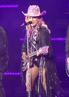 Tamez is best known for her work with Lady Gaga, for whom she designed a hat worth one million dollars and the famous Joanne pink hat.[3][4][5] Tamez is also associated with celebrities including Megan Thee Stallion, Cardi B, Beyoncé, Johnny Depp, David Bowie, Kim Kardashian, Alicia Keys, Cher, Katy Perry, Janet Jackson, Salma Hayek, Jennifer Lopez, Cindy Crawford, Travis Barker, Demi Lovato, Future, Lil Nas X, Ariana Grande, Sia, Kendall Jenner, Kylie Jenner, Kourtney Kardashian, Hailey Bieber, Nathalie Kelley, LeBron James, Vanessa Hudgens, Kelly Wearstler, and Gigi Hadid.[6][7][8][9][10][11][12][13] She is also a member of the Council of Fashion Designers of America.[14] Tamez was listed by Forbes as one of the most creative Mexicans in the world.[15]