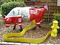 In August 2004, the cow sculpture was transformed into a tribute to the Fairfield Fire Department, Station 2. The work incorporated memorial logos for the Worcester 6, and 9/11 FDNY. The firefighters' union logo and Irish firefighter logo were also reproduced.