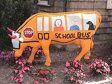 In August 2003, the cow sculpture was converted to art with a first-day-of school motif. The work "Gladys as a School Bus" represented the first piece that was designed to closely resemble a real-life object, and was achieved in a paint-only medium.
