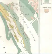 The Glass Peninsula is a peninsula extending southeast from Admiralty Island, between Seymour Canal and Stephens Passage, Southeast Alaska, United States. It was named by the United States Coast and Geodetic Survey for United States Navy Commander Henry Glass, who had made surveys in the area in 1881.[1][2] It was first charted in 1794 by Joseph Whidbey, master of HMS Discovery, during George Vancouver's 1791–1795 expedition.[3]
