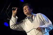 Lang's involvement on the album was not publicized, nor was lang referenced in the episode;[28] critics and viewers were uncertain who was singing, both on the album and in the episode,[29][30] with many believing it to be Jane Lynch (Sue Sylvester), who is in the relevant scene,[31][32] while others proposed Dot-Marie Jones (Coach Beiste) or Heather Morris (Brittany Pierce), whose characters are also involved in the storyline.[28][11] Kevin Fallon of The Atlantic said that to use a guest vocalist when there were these three singers in the cast available that would make sense, and then to not advertise the guest, was "downright puzzling".[28] When the episode premiered, lang used the song to announce her forthcoming album Sing It Loud;[33] when Sing It Loud was released in July 2011, lang praised Glee for its gay representation.[34]