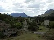 The closure of the works loomed as a personal financial catastrophe for those who had built or bought houses on land in the township.[42][40][43] The Commonwealth Government agreed to compensation that softened the blow, and the unions agreed to allow the industrial plant to be disassembled.[44][45] Beginning in early 1953, much of the movable equipment and other salvageable items were put on sale at auction.[46] The population soon drifted away—dwindling from around 2,000, at its peak, to only 195 by late 1954[47]—and some buildings in the town were relocated, leaving Glen Davis close to a ghost town. The immovable parts of the plant became ruins.[48]