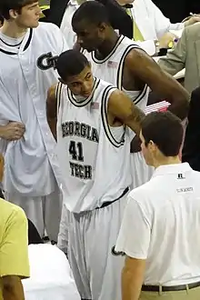 As a sophomore, Rice posted six 20-point games,[21] but three times (all Georgia Tech victories) he played at least 10 minutes while scoring no points.[22] He started 23 of 31 games that year.[23] Rice ranked second on the team in terms of minutes, points, rebounds, assists and steals.[24] He ranked 17th in the ACC in scoring and 6th in steals.[25] Three times Rice had more than 10 rebounds, giving him three double-doubles.[22] Early in his sophomore season, the 2010–11 Yellow Jackets team was in the same Legends Classic Tournament as the 2010–11 Michigan Wolverines men's basketball team, but since the Wolverines did not qualify for the championship game, he did not get to play against his father's alma mater.[26] In mid-January, Rice had his first back-to-back twenty-point scoring nights on January 16 and 19 against North Carolina and Wake Forest.[27][28] Later in the season, he posted season highs in rebounds and point in back-to-back games:[22] Rice had 12 rebounds on January 30 against the Maryland Terrapins and 28 points on February 3 against the Miami Hurricanes.[29][30] Coach Paul Hewitt suspended him for the final three games of the season.[31]