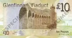 The Glenfinnan Viaduct features on some Scottish banknotes. The 2007 series of notes issued by the Bank of Scotland depicts different bridges in Scotland as examples of Scottish engineering, and the £10 note features the Glenfinnan Viaduct.[17]