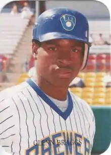 Drafted by the Milwaukee Brewers in the 2nd round of the 1983 Major League Baseball Draft, Braggs made his major league debut with the Brewers on July 18, 1986. Starting in left field and batting fifth, Braggs went 1-4 in a 6-1 road loss to the Oakland Athletics. His first career hit was a sixth-inning single off Joaquin Andujar.[2] He hit the first of his 70 career home runs on August 2, 1986 with a two-run shot off Charlie Hough.[3]