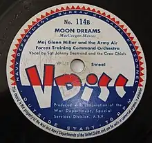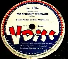 | "In The Mood" | ① | 28 | Instrumental. Number one for 13 weeks. "In The Mood" had a long history, even before Glenn Miller recorded it. Composition was credited to Jerry Gray, but fragments of the song had been found in earlier recordings dating back to the early 1930s.[13] The 1939 Bluebird recording was also released as V-Disc 123B in February 1944. A version was also released as V-Disc 842B in May 1948 by Glenn Miller and Overseas Band by the U.S. War Department.