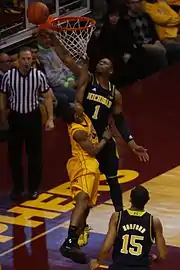 Following the season, Robinson was invited to participate in the four-team All-American Championship along with future teammate McGary in New Orleans on April 1, 2012.[15] He posted 16 points and 4 rebounds to earn the ESPNHS All-American Championship game MVP.[16] He was named the 2012 Post-Tribune boys' basketball player of the year.[2] By the end of his senior year, Robinson was considered a five-star player by Rivals.com.[17] Robinson was an honor roll student at Lake Central.[2] He placed fourth in the Indiana Mr. Basketball voting behind Gary Harris, Yogi Ferrell and Kellen Dunham.[18] Robinson was a second-team Associated Press all-state selection.[2] His late rise offset a late fall by McGary and enabled Michigan to retain its top-ten class status.[19]