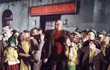 Strange played the monster a third time in Abbott and Costello Meet Frankenstein (1948), with Chaney, Jr. as the Wolf Man and Bela Lugosi in his second screen appearance as Count Dracula. Strange also appeared in character with Lou Costello in a haunted house skit on The Colgate Comedy Hour and made a gag publicity appearance as a masked flagpole-sitter for a local Los Angeles TV show in the 1950s. After weeks of the station teasing the public about the sitter's identity, Strange removed his mask and revealed himself as Frankenstein's monster (actually, yet another mask.) Strange also played a monster in the Bowery Boys horror-comedy Master Minds in 1949, mimicking the brain-transplanted Huntz Hall's frantic comedy movements, with Hall providing his own dubbed voice.