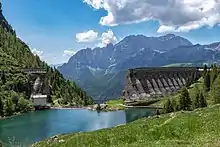 The Gleno Dam was a multiple arch buttress dam on the Gleno Creek in the Valle di Scalve, northern Province of Bergamo, Italy. The dam was built between 1916 and 1923 with the purpose of producing hydroelectric power. The middle section of the dam collapsed on 1 December 1923, forty days after the reservoir was filled, causing widespread flooding that killed at least 356 people.[1]
