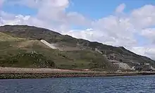 Glensanda Castle (Caisteal Na Gruagaich (Maiden's Castle);[1] overlooks the mouth of the Glensanda River which tumbles down 400 metres along its 5-mile (8-kilometre) course from 'Caol Bheinn' into Loch Linnhe. The castle was the main base of the Macleans of Kingairloch (Kingerloch) since the 15th century, but the population fell from 500 to zero after 1812 when they emigrated to Pictou, Nova Scotia.[2][3][4]