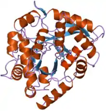 The gliadins are intrinsically disordered proteins meaning that they have continuously altering shapes making it difficult to study them. The performed image analysis and computer simulations of the proteins show that the average shape of the gliadins follows an elliptical shape.[7] Compared to the other gluten proteins like the glutenins, which form extended networks of polymers due to disulphide bonds, gliadins are monomeric molecules in the cell, even if they in many ways are very similar. Especially the low molecular weight glutenins are similar in the way that they have cysteines located in matching locations as many of the gliadins. However, the gliadins are unable to form polymers in the cell since its cysteines form intra-chain disulphide bonds at synthesis due to hydrophobic interactions.[7]