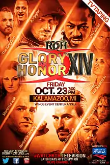 Glory By Honor XIV was a two night, two city professional wrestling event produced by the U.S.-based wrestling promotion Ring of Honor, and the 14th Glory By Honor. The first night of the event took place on October 23, 2015 at the Wing's Event Center in Kalamazoo, Michigan. The second part of the event took place on October 24, 2015 at Montgomery County Fairgrounds Coliseum in Dayton, Ohio.
