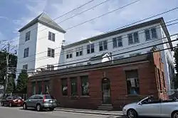 The Gloucester Net and Twine Company is a historic factory in Gloucester, Massachusetts. It was the factory of one of Gloucester's most importing fishing-related manufacturing businesses, founded in 1884. The complex was built c. 1899. The main factory building is a utilitarian wood-frame structure three stories high, six window bays wide and fourteen long. Its long facade, along Maplewood Avenue, is centered on a four-story tower, to the right of which is a single story brick power supply building with Italianate detailing.[2]