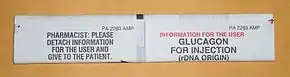 - "Glucagon for Injection, rDNA formulation" (PDF). Lilly. Retrieved 23 February 2014.