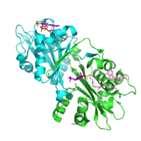 - Vithani N, Bais V, Prakash B (June 2014). "GlmU (N-acetylglucosamine-1-phosphate uridyltransferase) bound to three magnesium ions and ATP at the active site". Acta Crystallographica Section F. 70 (Pt 6): 703–8. doi:10.1107/S2053230X14008279. PMC 4051520. PMID 24915076.
