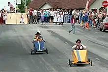 Gravity racers, in North America usually referred to as Soap Box Derby carts, are the simplest type of go-karts. They are propelled by gravity. Go-karts without motors (quadracycles) may also be propelled by bicycle pedals.