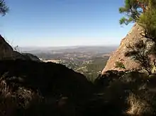 God's Seat is a popular vista and rock formation in Malibu, California, United States, about two miles east of Circle X Ranch in the Santa Monica Mountains National Recreation Area. God's Seat's name derives from its natural throne-like shape at the top of a thousand-foot cliff. It is well-known locally for its scenic views of Lake Sherwood, Sandstone Peak, the Conejo Valley and the Pacific Ocean.