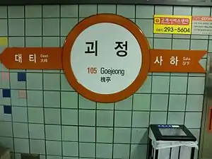 Goejeong Station is a station of the Busan Metro Line 1 in Goejeong-dong, Saha District, Busan, South Korea.