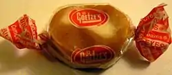 Goetze's Candy Company, Inc. (pronounced gets) is an American confectionery company based in Baltimore, Maryland specializing in caramel-based candies. Goetze's was established in 1895, as the Baltimore Chewing Gum Company by August Goetze and his son, William. In 1917, the family developed a soft, caramel candy (known as "Chu-ees"[1]) which ultimately evolved into their signature candy, Caramel Creams (also known as Bull's Eyes), a soft chewy caramel with cream filling in the center.[1] Each individual candy is typically packaged in a clear wrapper and twisted at two red and white ends.[2]