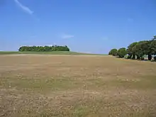 Hidden within the copse of trees which surmounts the knoll is a bowl barrow which dates from the Bronze Age and is reported to be substantially intact. It is a scheduled ancient monument.[1] The barrow is 21m in diameter and stands some 1.5m in height above ground level. In the absence of trees, the barrow would be a prominent landmark overlooking the ancient Icknield way (the current route of the A505) and the low-lying land towards Duxford and Cambridge. Excavcations of the barrow were carried out by RC Neville in the mid 19th Century[2] and again around 1920.