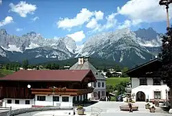 Going am Wilden Kaiser is a municipality in the district of Kitzbühel in the Austrian region of Sölllandl. It is located 8.5 km northwest of Kitzbühel and 5 km west of Sankt Johann in Tirol. The village has 1849 inhabitants and is divided into 5 sub-districts. Its main source of income is tourism. It is connected to the large Ski Welt skiing area by the Astbergbahn chairlift, which takes skiers rapidly from Going in the valley up to the large expanse of ski terrain on the mountainsides.