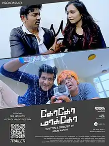 Goko Mako is a 2019 Tamil language romantic comedy independent film directed by Arunkanth. The film stars Ramkumar, Danusha, Chaams & Kalangal Dinesh in the lead roles with Sara George, Vinod Varma, YG Mahendra and Santhana Bharathi in supporting roles. This is the first Tamil theatrical feature film to be completely shot on a Go Pro.[2][3]