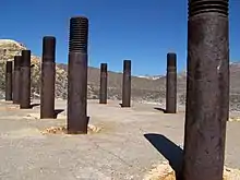 Today, little remains of the original town other than the foundations of a stamp mill, the footers for a tank at the cyanide plant and sections of the water line that ran between Gold Center and Carrara.[1] It is a ghost town. However, what is left of the town does now sit along the paved road connecting U.S. Highway 95 to Beatty's airport. On January 22, 2011, new life came to the area in the form of Nevada's newest legal bordello when, somewhat appropriately given the area's railway history, a retired short-line railroad owner by the name of Guy Brenkman opened Bikini's Gentlemen's Club off Airport Road in Gold Center.[2]