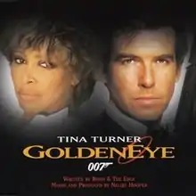 "GoldenEye" is a song written by Irish musicians Bono and the Edge and performed by American singer Tina Turner. The song served as the theme for the 1995 James Bond film GoldenEye. Released as a single on November 6, 1995, the track was a chart hit in Europe, topping the Hungarian Singles Chart and reaching the top five in Austria, Finland, France, Italy, and Switzerland. It was less successful outside the continent, reaching number 43 in Canada, number 63 in Australia, and number two on the US Billboard Bubbling Under Hot 100.