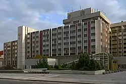 The hotel opened in 1974 as the Inter-Continental Praha, and was later slightly renamed as the InterContinental Prague. It was designed by noted Czech architect Karel Filsak in the Brutalist style, and was constructed by the Czech national travel firm ČEDOK from 1968 to 1974.[1] The hotel was owned by bank funds from 1990 to 1999, during the privatization process. It was renovated in 1992–1995, overseen by architect Roman Koucký. Strategic Hotels & Resorts purchased the property in 1999. The interior was renovated in 2002, though certain original elements by designer Miloslav Hejný were preserved.